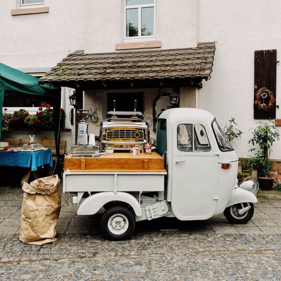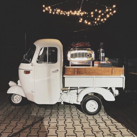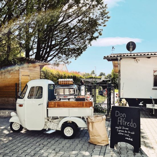 Die vintage Ape AC4 aus den goldenen Sechzigern (Baujahr 1963) kommt als mobile Kaffeebar mit zwei Takten auf seinen drei Rädern auch auf Deine Veranstaltung geknattert. Ausgestattet mit einer komplett revidierten Faema President-Handhebel-Espressomaschine (Baujahr 1965) bietet Caffè Don Alfredo Kaffeespezialitäten, bei denen nicht nur Italiener begeistert sind.