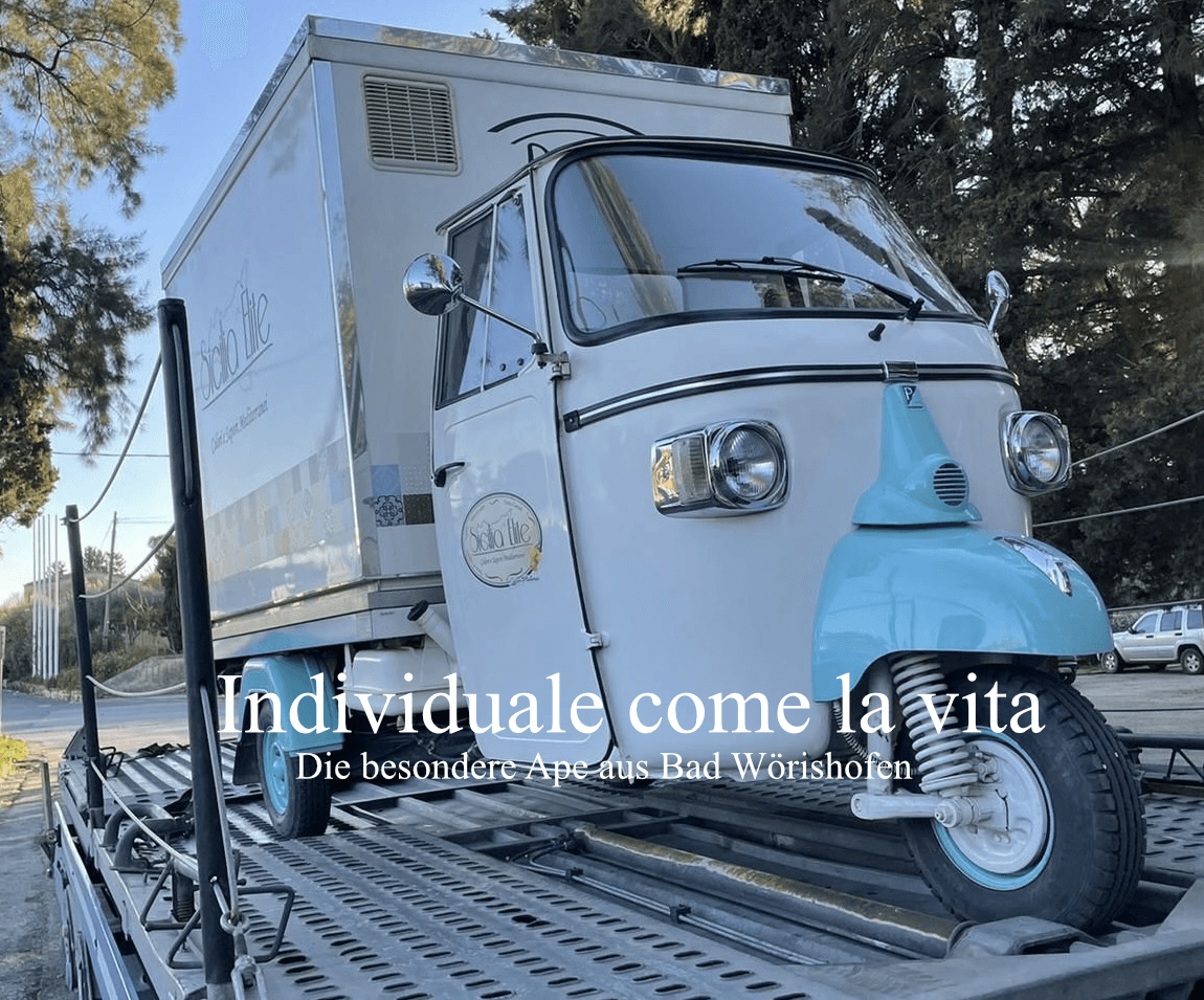 Die Ape kann durch die eingebauten Kühltruhen ein Grill/BBQ Catering für Ihr Event stellen. Mit der fest eingebauten Kaffeemaschine können wir auf deinem Event das passende italienische Feeling erzeugen. Ob Sektempfang auf der Hochzeit oder als Cocktail-Bar beim runden Geburtstag, unsere Ape ist genauso individuell wie deine Wünsche.